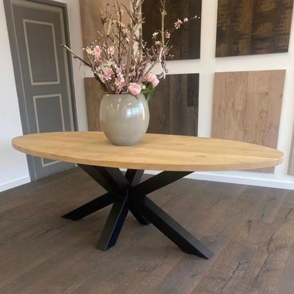 Nieuwe ovale eikenhouten tafel - Onderstel zwart metaal